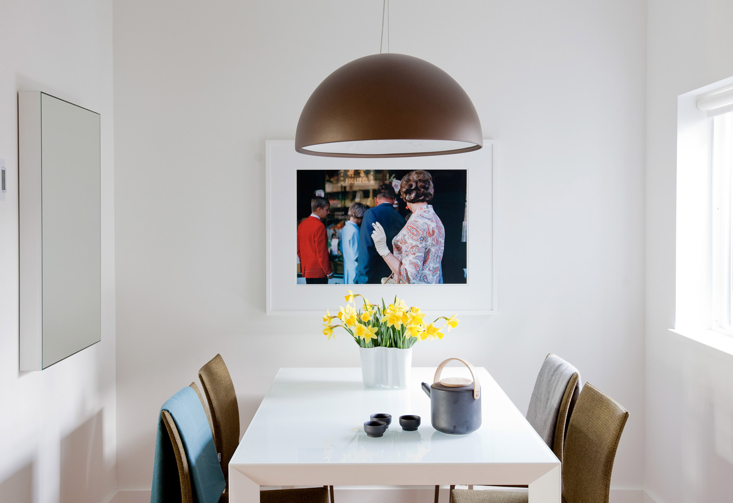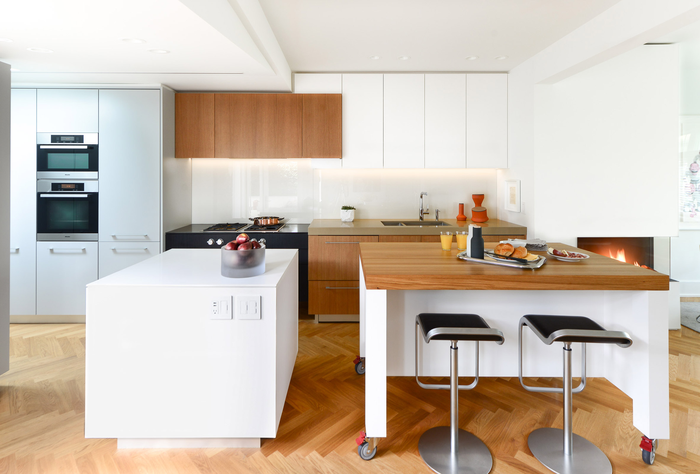 Falken Reynolds оптимизира пространството, като строи един неподвижен кухненски остров и добавя близо до него трапезарна маса на същата височина. Бивайки поставена на колела масата може да се движи лесно, за да се освобождава пространство, когато е нужно.