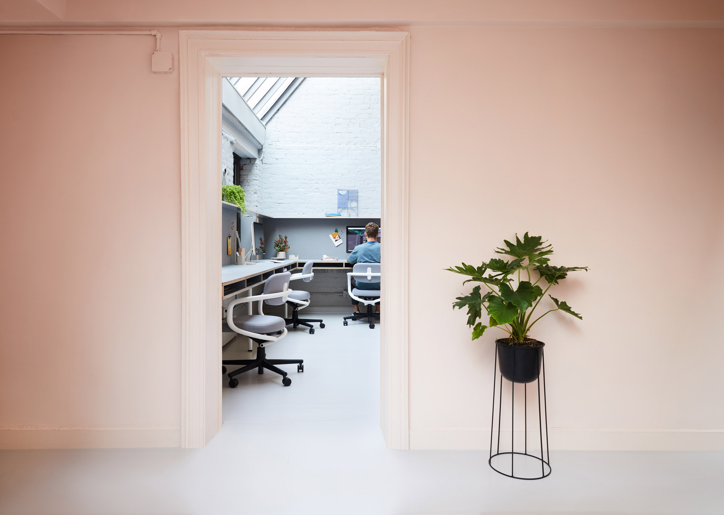 Трета, по-голяма стая, играе ролята на основно работно пространство и е боядисана в мек сив цвят. Приличащите си ръчно изработени бюра са наредени така, че светлината да влиза през високите прозорци, създавайки усещане за оранжерия.