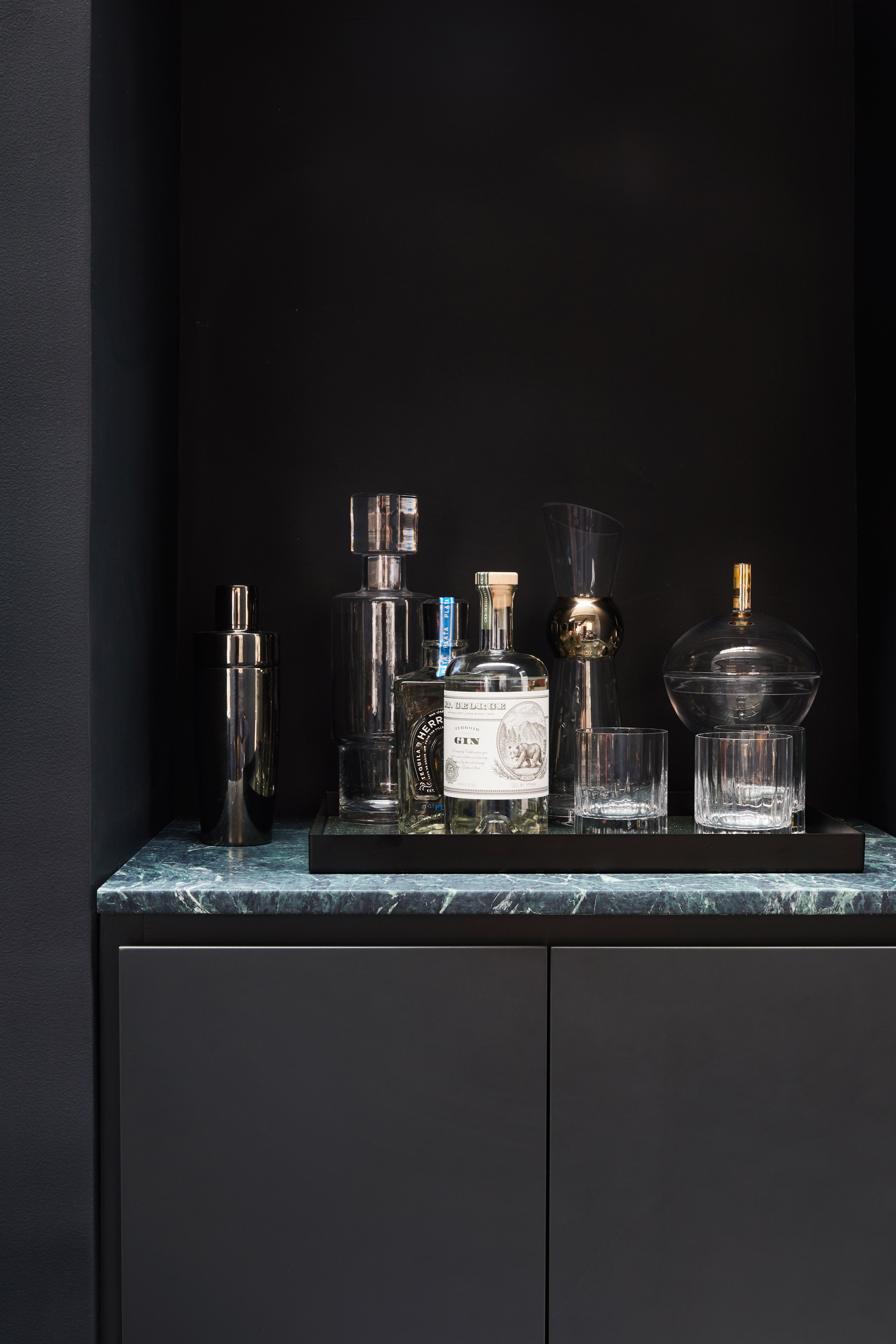 "В този триптих пренесохме функциите на творчески офис", споделят от студиото. "От единия край се влиза през работеща кухня, която от своя страна е с високи плотове, на които човек да застане удобно. Те са проектирани да събират широкоформатни печатни материали, но могат да се използват и за неформално хранене и събития."