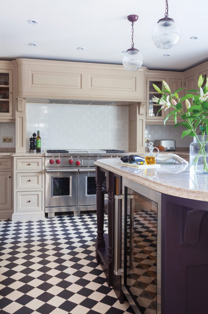 Вторият пример е в Old Georgian Rectory в Уоруикшир. Точно в тази определена кухня с Georgian стил, Кристофър е използвал предимството от височината на тавана, за да създаде драматичен ефект.