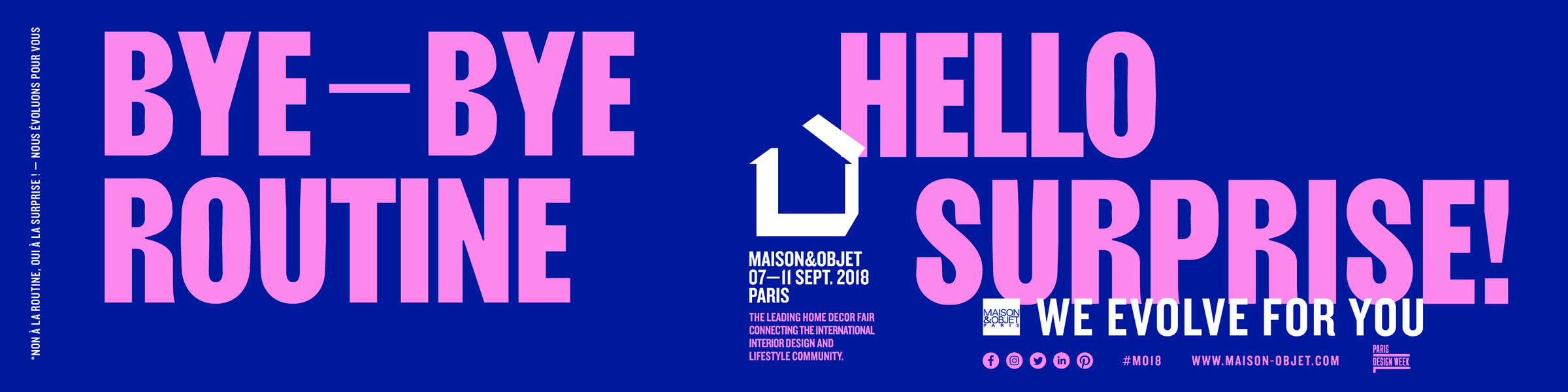 Като платформа изцяло посветена на бизнеса, MAISON&OBJET постоянно се стремят да се представят все по-добре. През септември 2018 те ще поемат ново предизвикателство: цялостна промяна на структурата. Новото оформление е отражение на желанието на организаторите да се върнат към основите: Maison и Objet.