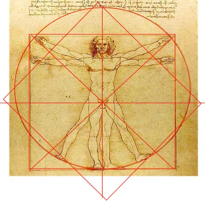 А защо симетрията в сградите е толкова удовлетворяваща? Както известната картина на Леонардо да Винчи ни демонстрира, тя отразява човешкото тяло, което има дясна и лява страна, гръб и лице, и пъп в центъра.