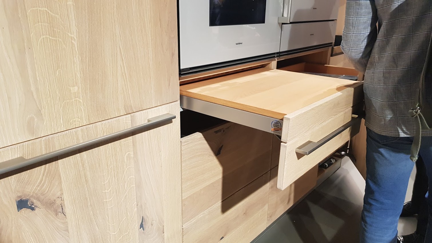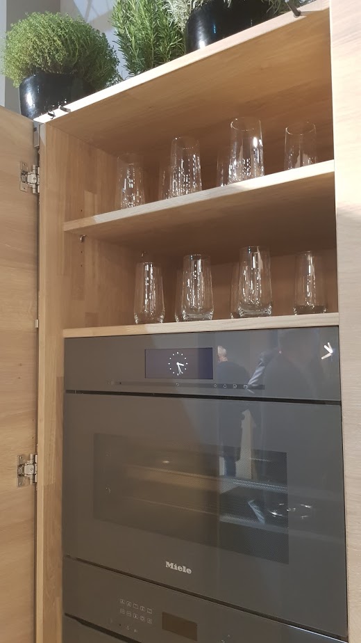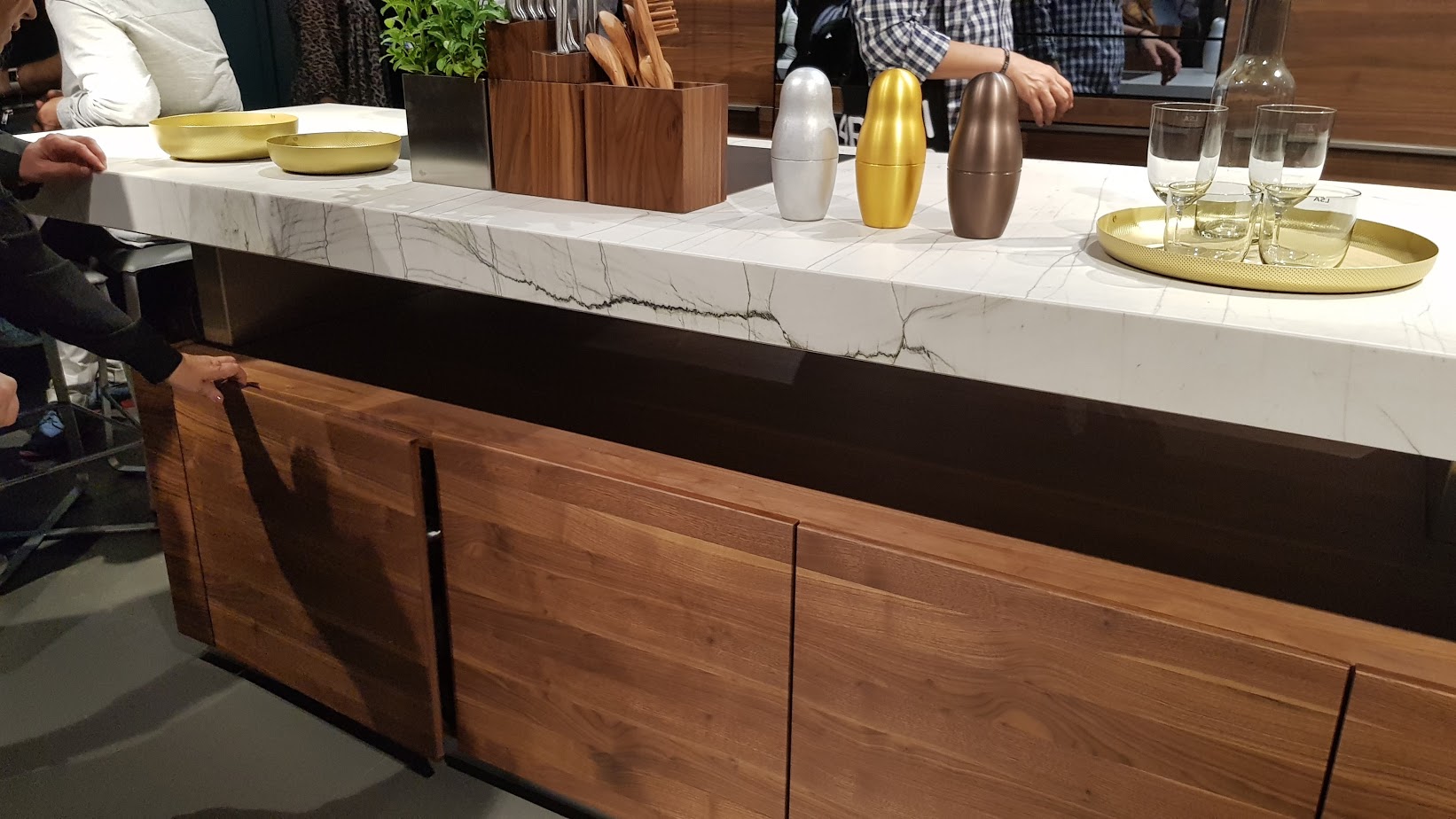Тънки керамични плочи, оформят лицето на кухнята, а интериорът на всяка тяхна мебел е произведен от масивно дърво. Тези естествени материали са и основната линия, която съзнателно или не, спазваха почти всички фирми, част от Salone del Mobile 2018.