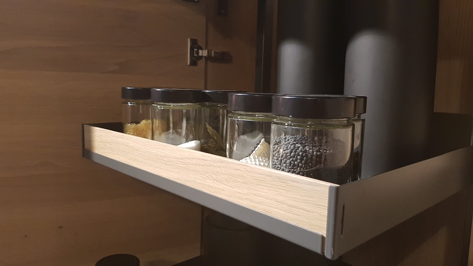 Издърпващ се механизъм за колона, позволява да се достига до дъното на шкафа, като по този начин се използва максимално височината и дълбочината на колоната.