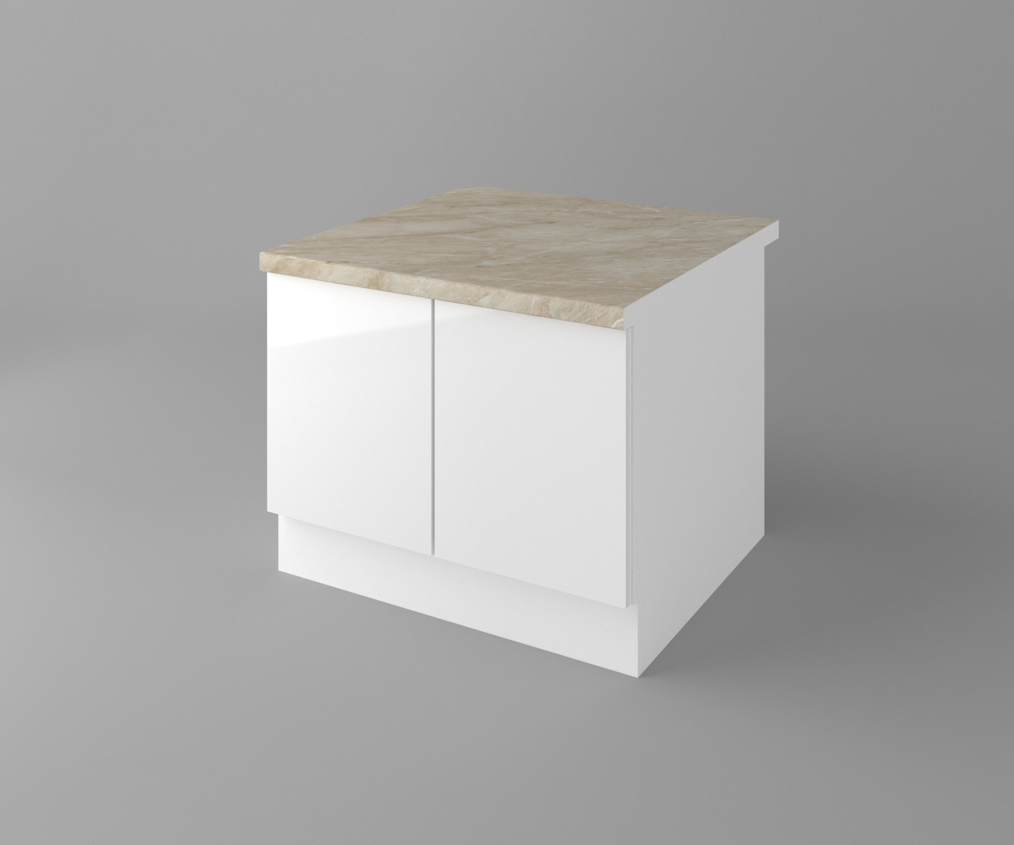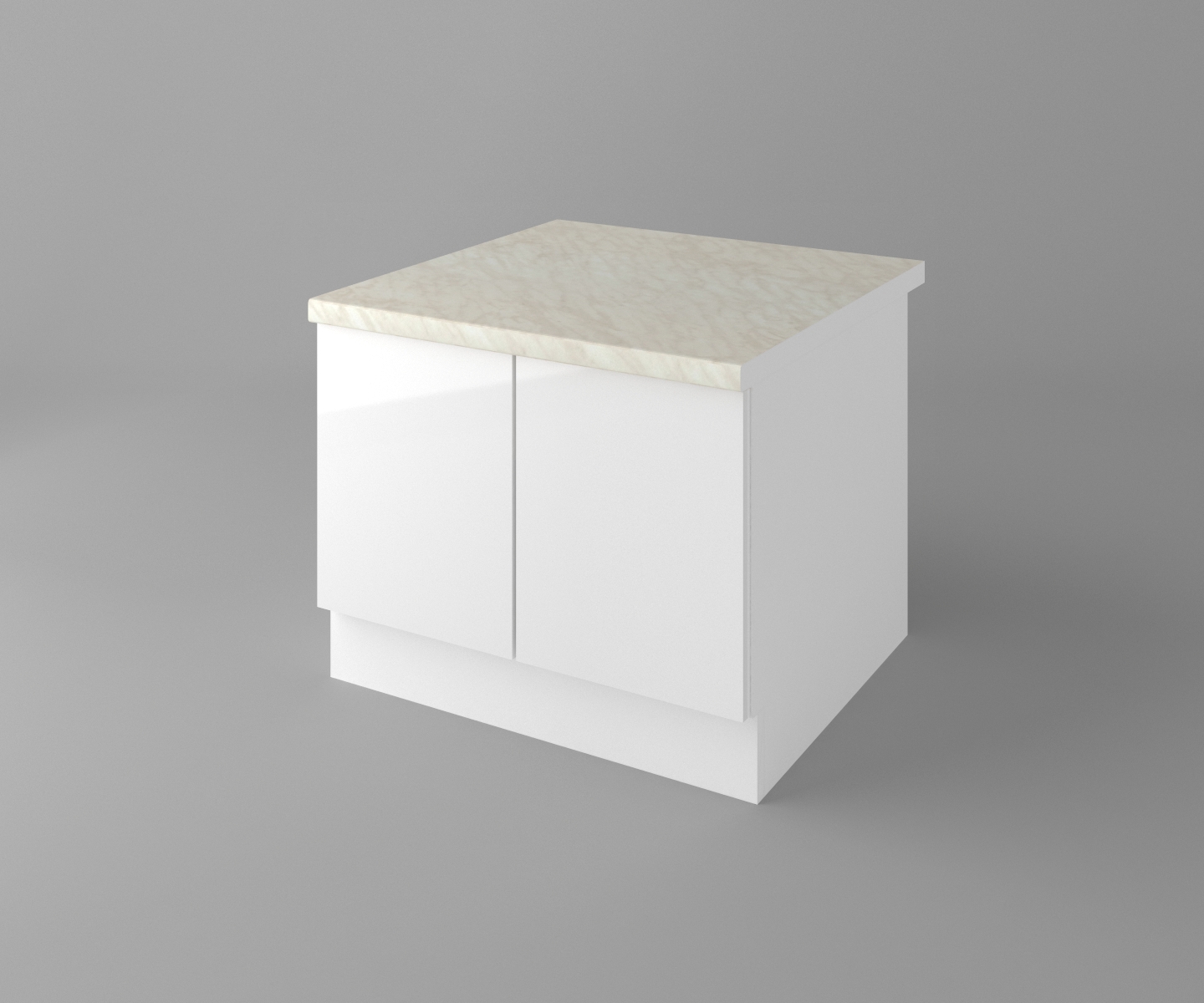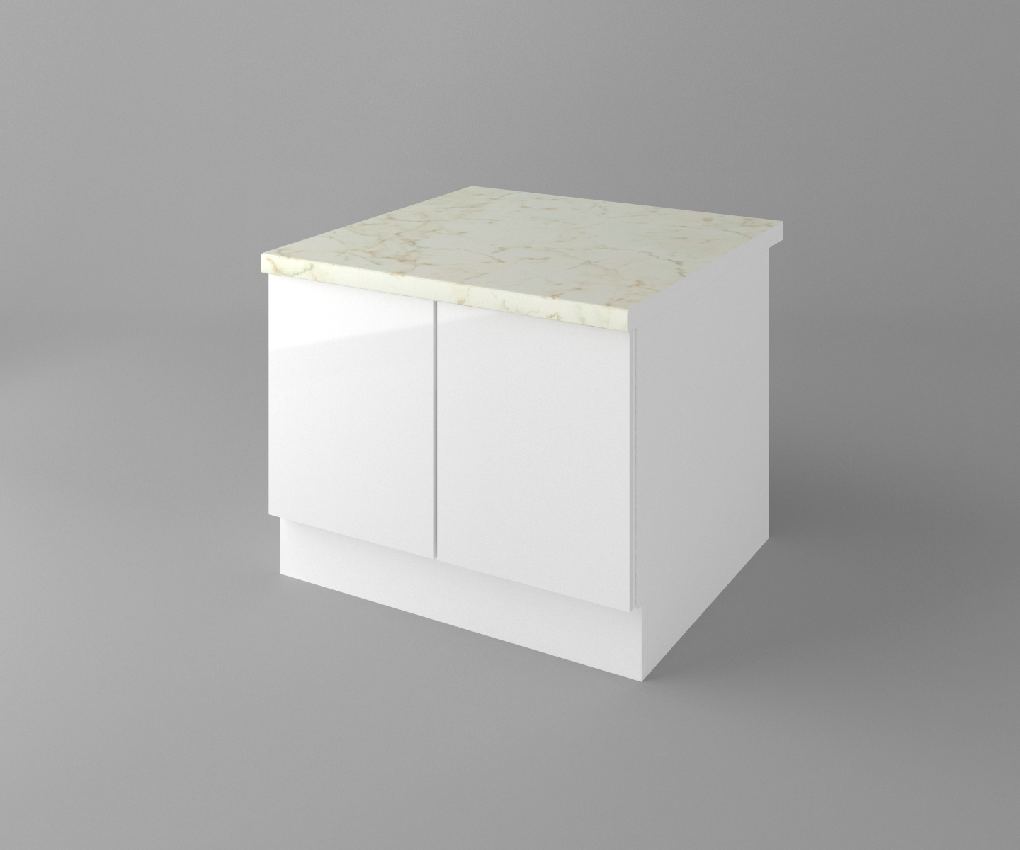 Цената на шкафа е с включен термоустойчив плот и метални дръжки.