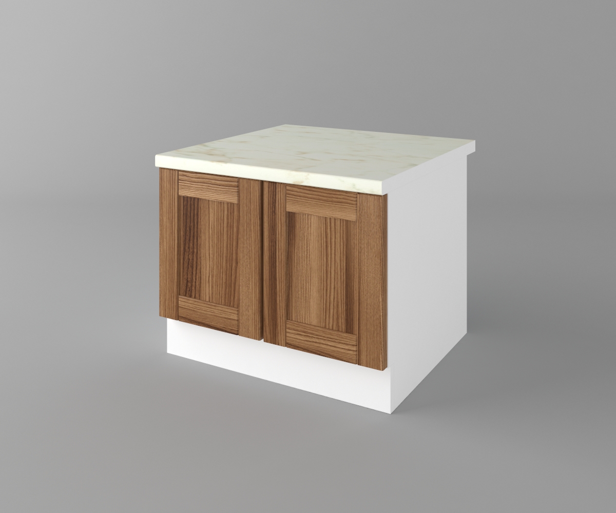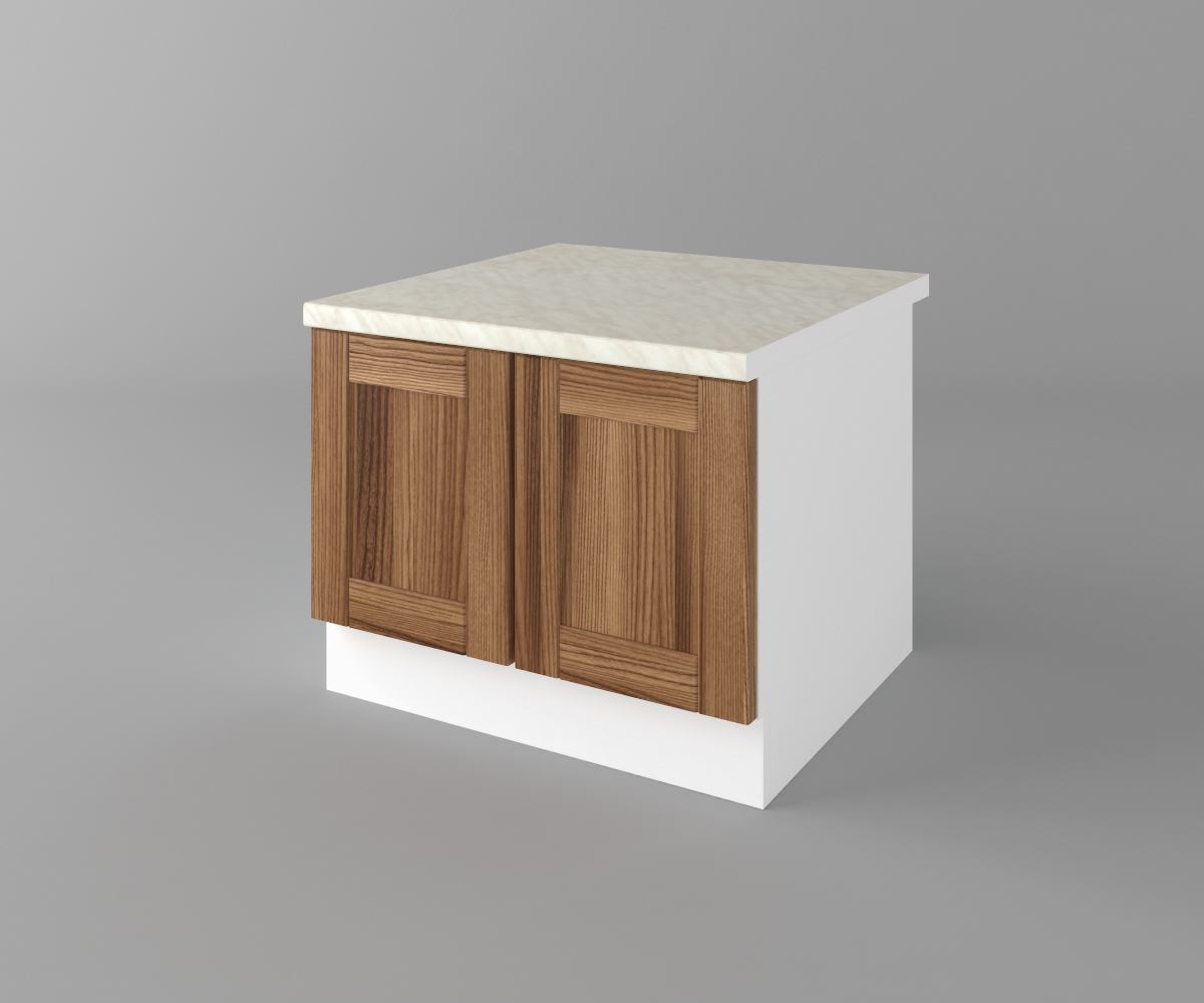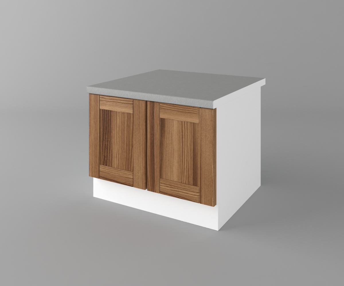 Цената на шкафа е с включен термоустойчив плот и метални дръжки.