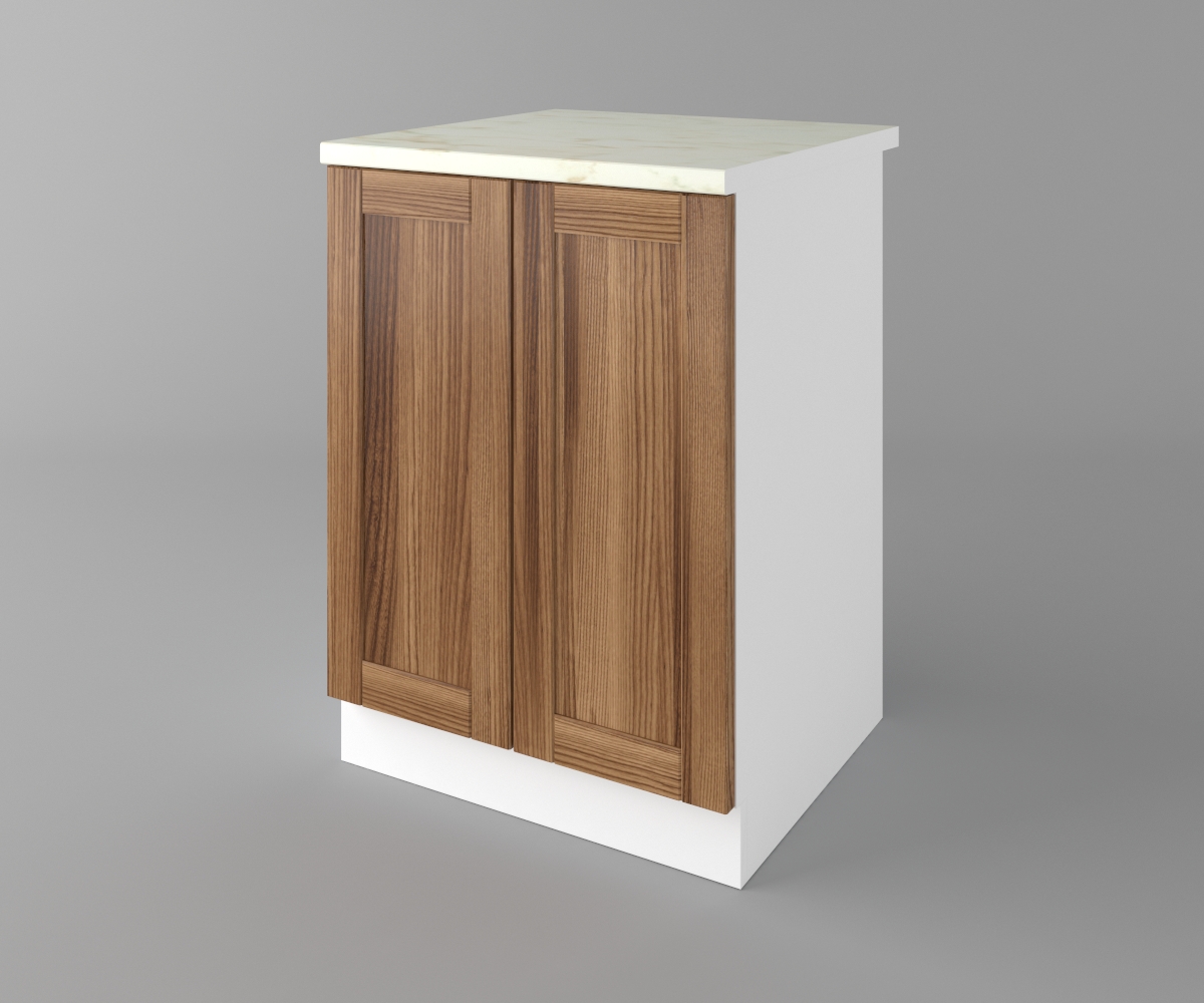 Цената на шкафа е с включен термоустойчив плот и метални дръжки.