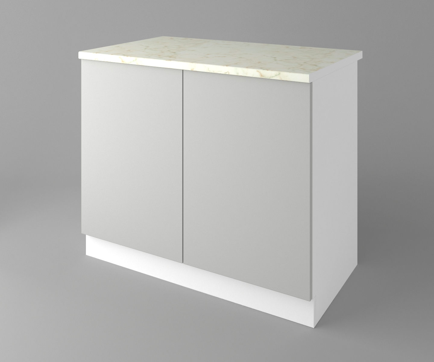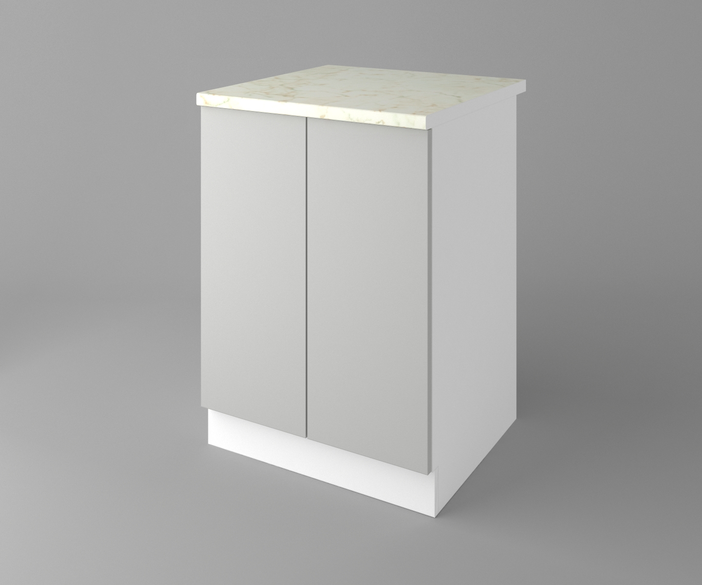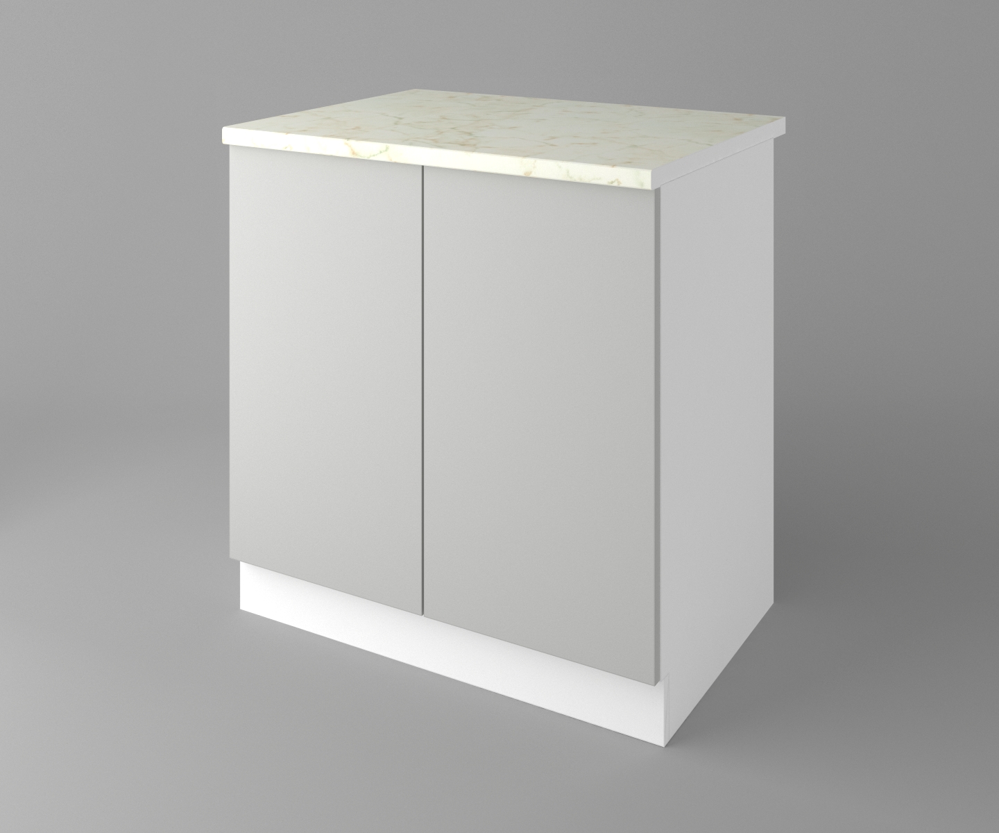 Цената на шкафа е с включен термоустойчив плот и метални дръжки.