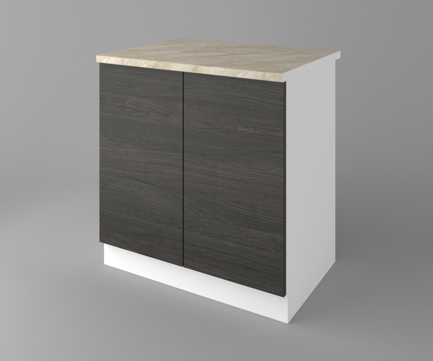 Цената на шкафа е с включен термоустойчив плот и метални дръжки.