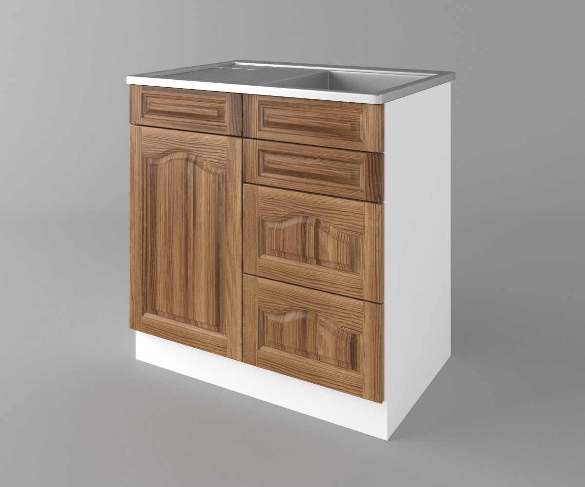 Долен кухненски шкаф с мивка - с четири работещи чекмеджета Астра - Канела