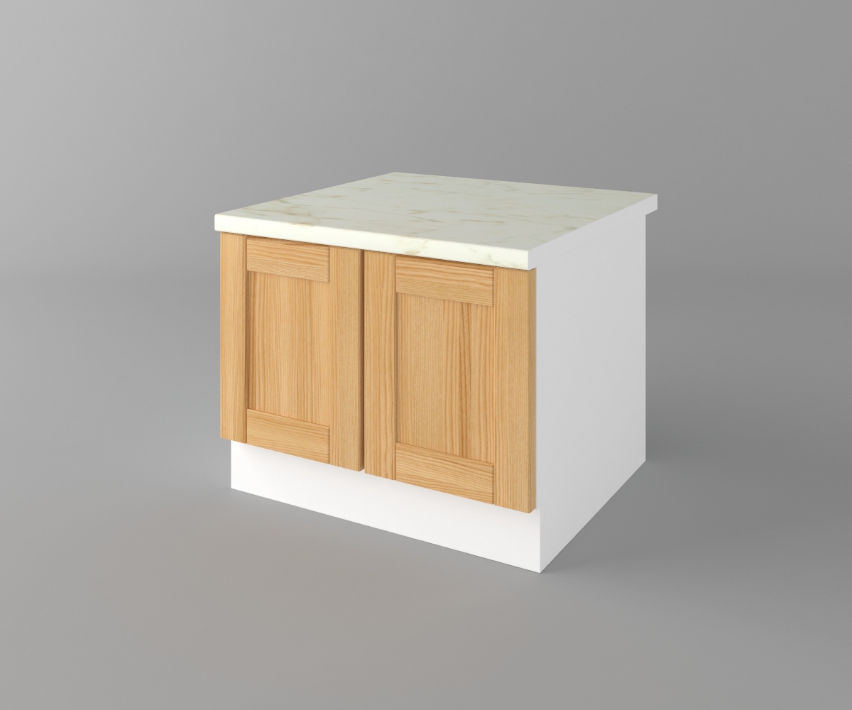 Цената на шкафа е с включен термоустойчив плот и метални дръжки.