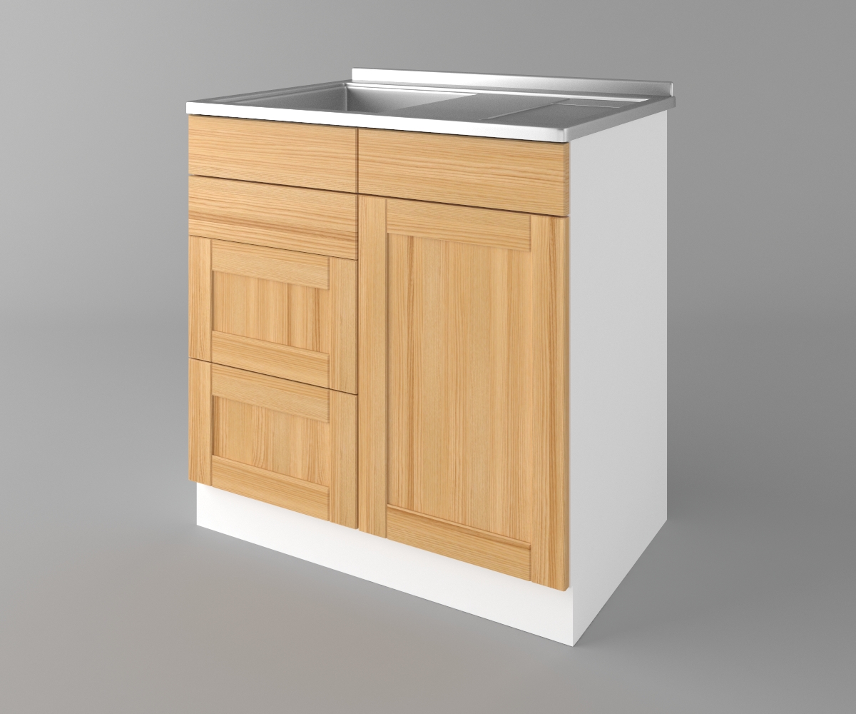 Долен кухненски шкаф с мивка - с четири работещи чекмеджета Калатея - Натурална