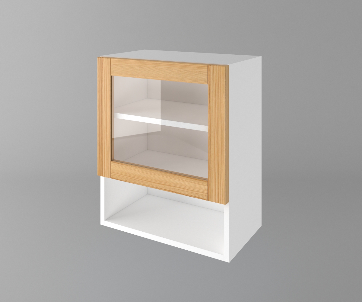 Горен кухненски шкаф с една врата за стъкло и ниша Калатея - Натурална