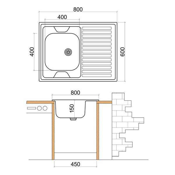 Мивка с плот и борд LIVINOKS - 800х600х150мм