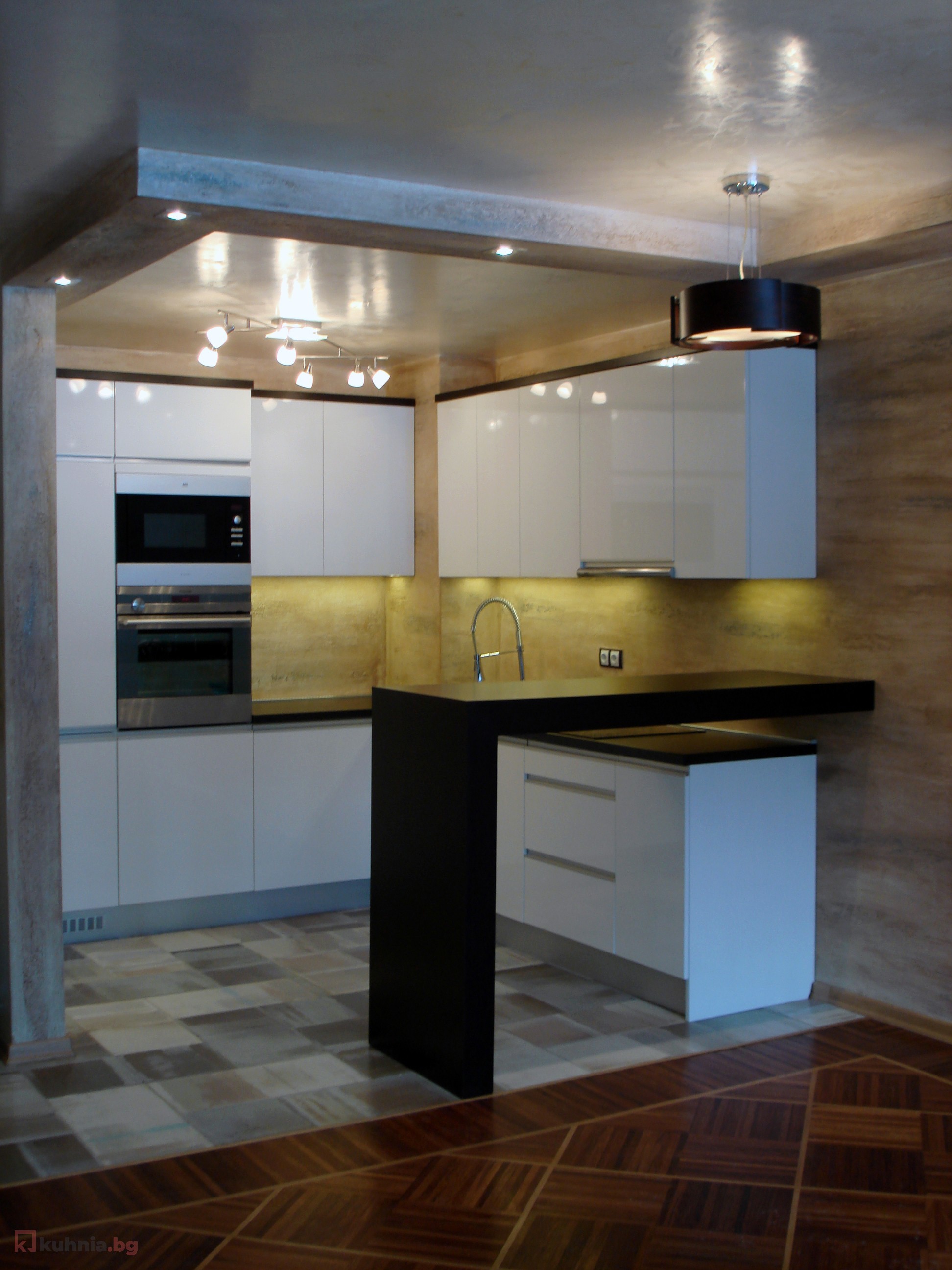 Ъглова кухня в бяло и черно