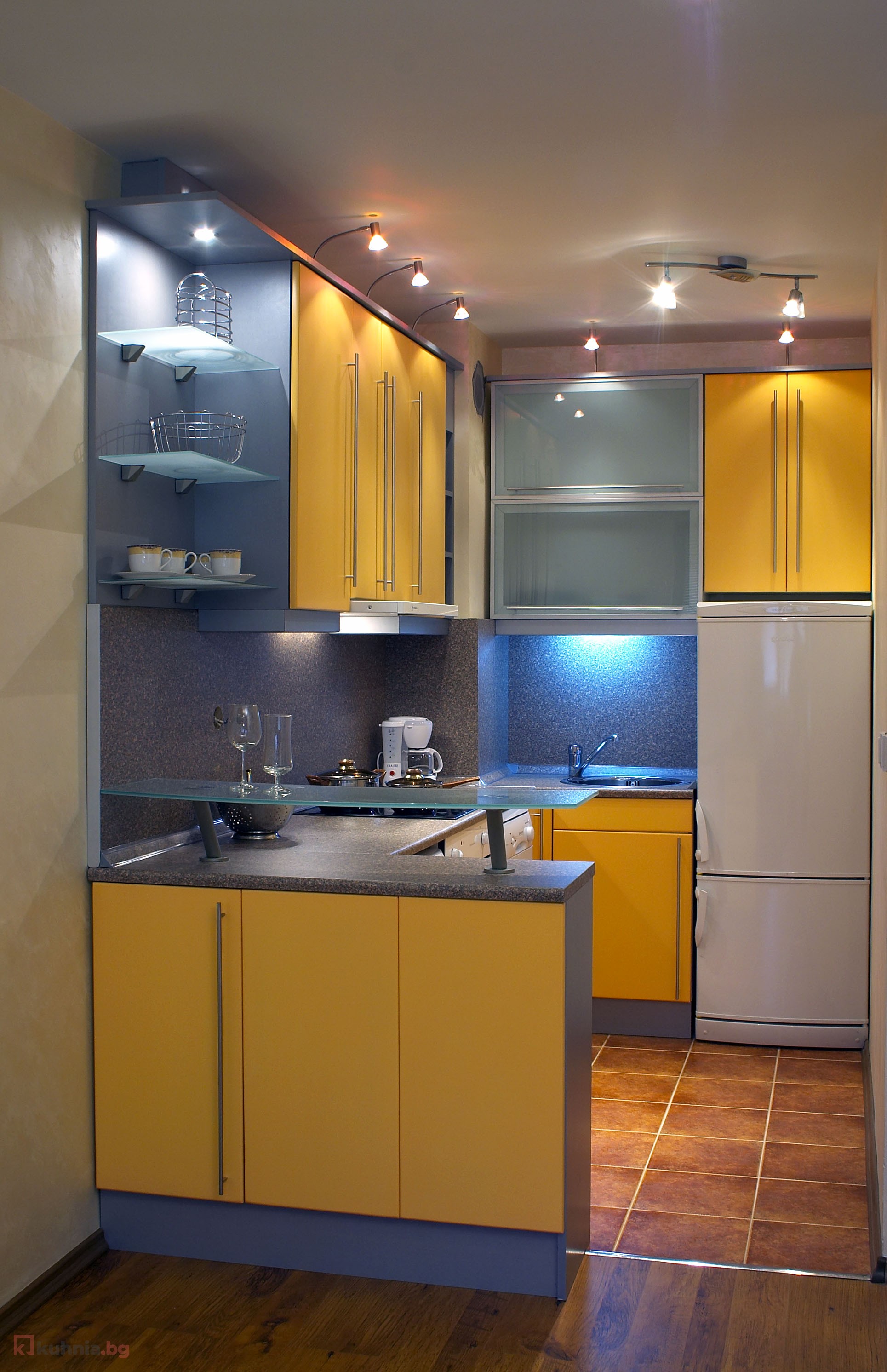 МАЛКА П-ОБРАЗНА КУХНЯ В ЖЪЛТО
