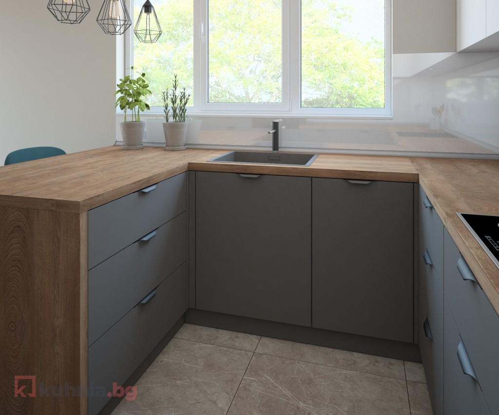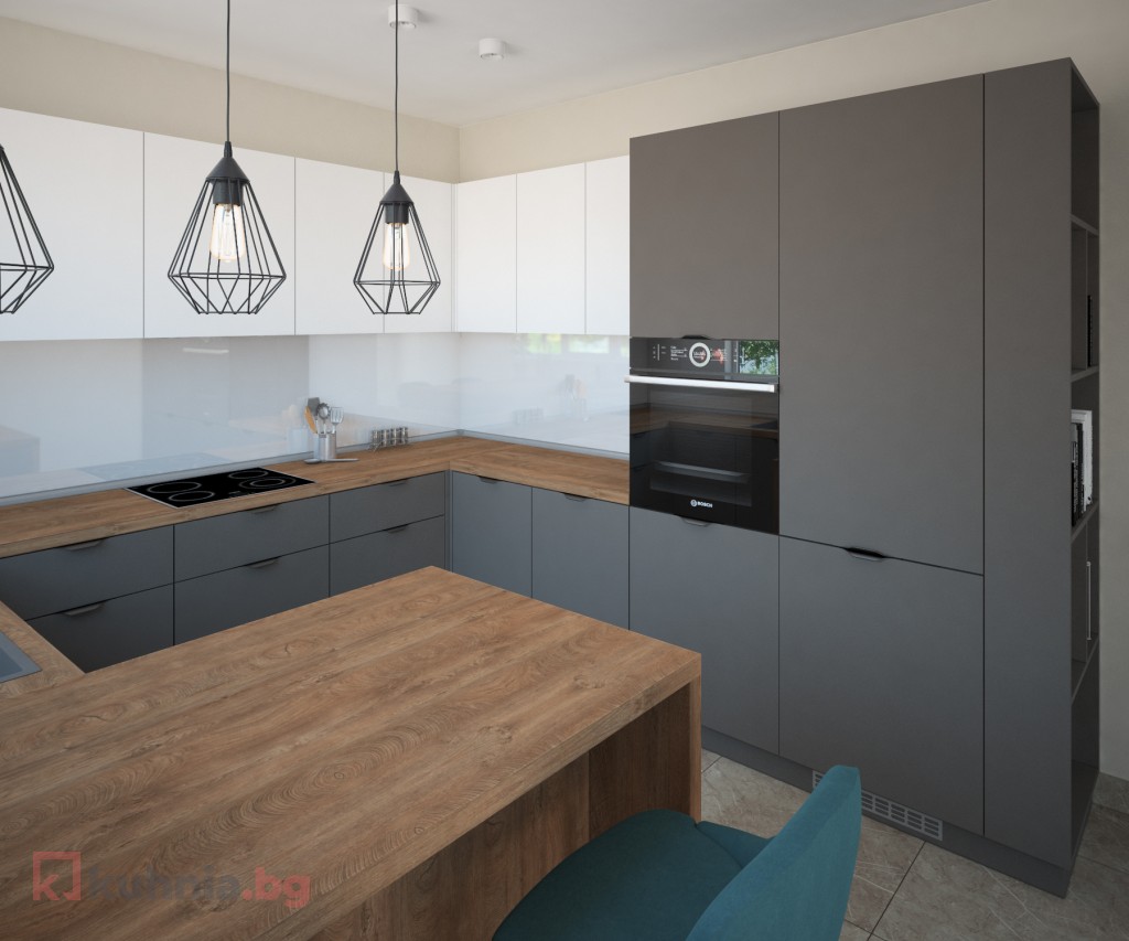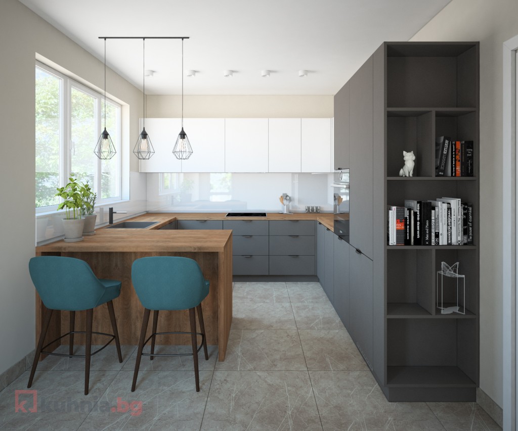 “П-образна кухня Лора с полуостров и отворени елементи”